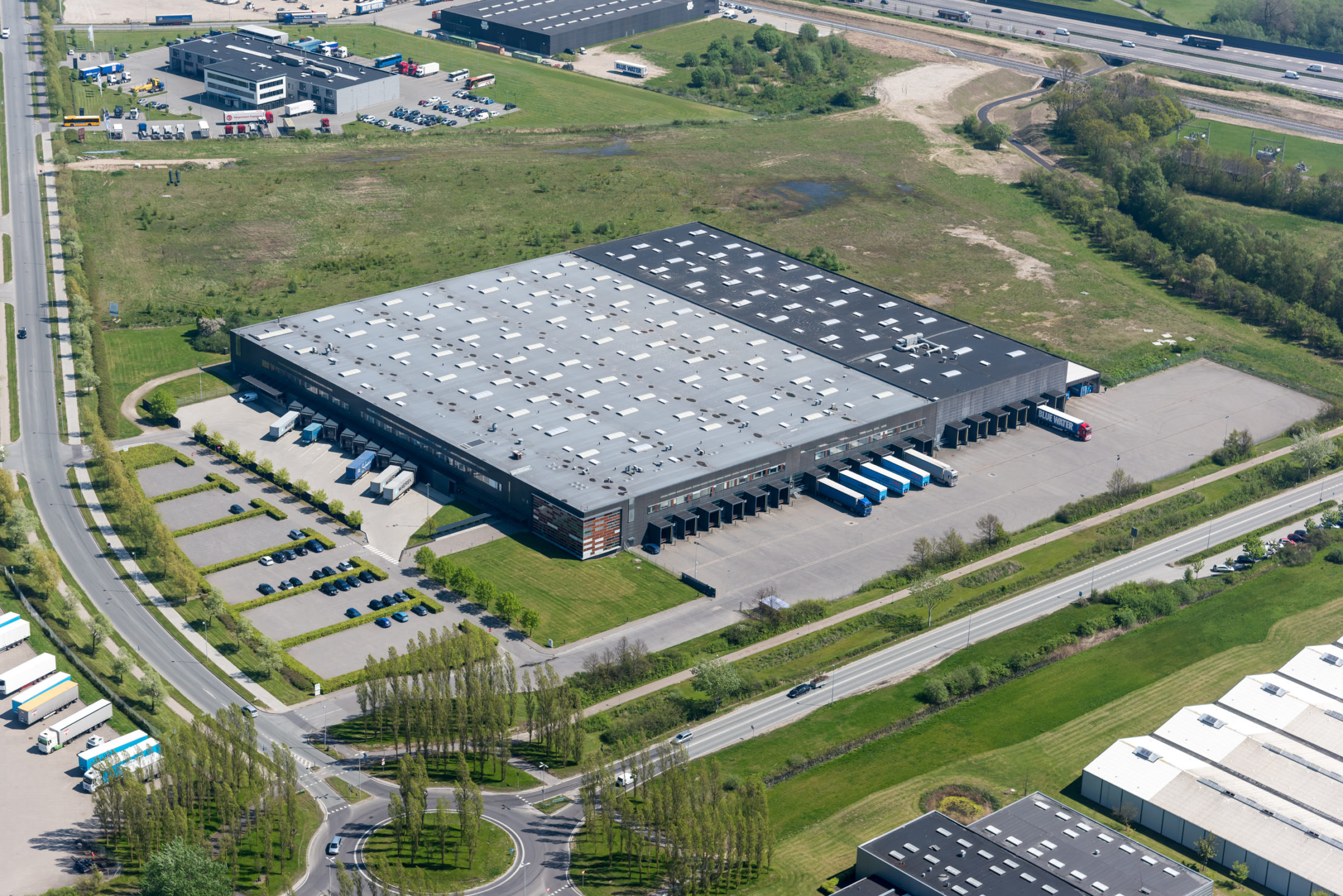 Greve logistics area is located 25 kilometers from Copenhagen city centre next to motorway E20. The property is located less than 1 kilometer from the nearest motorway exit.